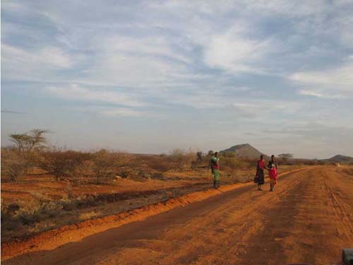 Με την ενέργεια της καινούργια ημέρας, ξεκινήσαμε το δεύτερο κομμάτι της ‘δύσκολης’ διαδρομής, Marsabit-Isiolo. Το τοπίο αλλάζει ξανά, γίνεται χώμα και θάμνοι, αλλά η διαδρομή παραμένει πολύ δύσβατη, προκαλώντας άλλο ένα σκασμένο λάστιχο και 3 χαλασμένα αμορτισέρ. Περνάμε χωριά που κατοικούν Samburu (φυλές συγγενικές των Maasai), και μας εκθαμβώνουν τα φανταχτερά χρώματα των φορεσιών τους. Σειρές από χρωματιστές χάντρες στους λαιμούς τους, οι γυναίκες γυμνόστηθες και οι άντρες με λόγχες στο χέρι. Η θερμοκρασία είναι πια 35C και τα αυτοκίνητα (και εμείς) έχουν γεμίσει και στις πιο κρυφές πτυχές τους σκόνη. Μετά από 10 ώρες οδήγημα, φτάνουμε στο Isiolo και είμαστε πια όλοι εξαντλημένοι.