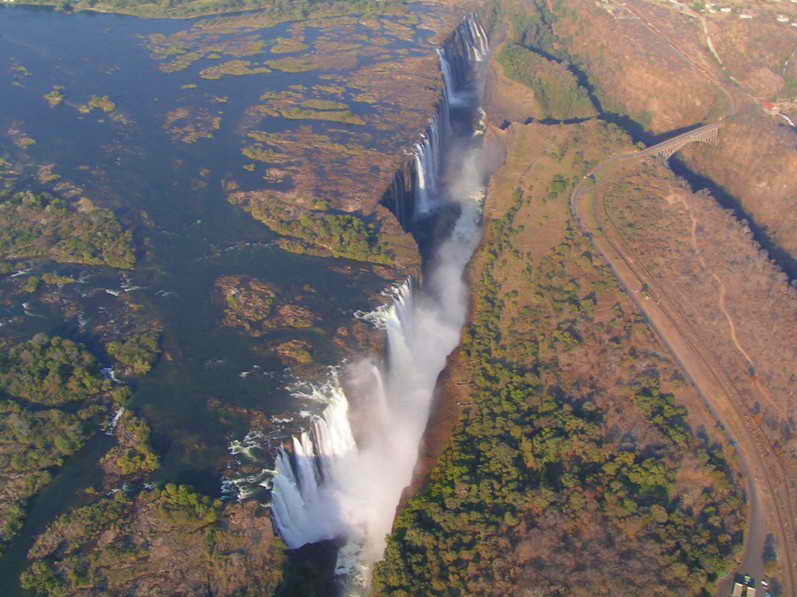 Μετά τους καταρράκτες το ποτάμι συνεχίζει την πορεία του μέσα από 7 διαδοχικά φαράγγια. Οι πλευρές από αυτά τα φαράγγια είναι κάθετες και έχουν ύψος περίπου γύρω στα 120 μέτρα. Η ποσότητα του νερού που πέφτει από τους καταρράκτες διαφέρει ανάλογα με την εποχή. Η περίοδος των βροχών ξεκινά από τα τέλη Νοεμβρίου και φτάνει έως τις αρχές Απριλίου. Την περίοδο του Φεβρουαρίου μέχρι τον Μάιο, είναι η περίοδος όπου ο Ζαμβέζης πλημμυρίζει. Το ύψος του σύννεφου που σηκώνεται από την πτώση των νερών φτάνει τα 400 μέτρα και είναι ορατό από απόσταση 50 χιλιομέτρων.
